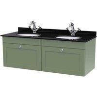nuie 1200mm Wall Hung 2 Drawer Vanity & Marble Top - Satin Green, Green