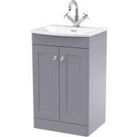 nuie CLC223J Classique Traditional Bathroom Floor Standing 2 Soft Close Door Vanity Unit and Curved Basin, 500mm, Satin Grey