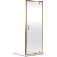 Manufactured from 6mm toughened safety glass, the Ruwa pivot shower door will create a luxurious showering enclosure in your bathroom. Available in a choice of 3 contemporary finishes; Chrome, Brushed Brass or Matt Black. | Balterley 6mm Glass Reversible Pivot Shower Door 1900 x 900mm Brushed Brass in Metallics - Manufacturers part number: BEETPD90BB