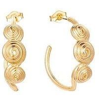 Seol + Gold 18ct Gold Plate Over Sterling Silver Spiral Shell Studs Softly twisted and sun-kissed, these sculptural gold hoops bring a touch of ancient elegance to a modern ear stack. With their organic shape and textured finish, they're made to catch the light. Spiral Shell Studs Half Hoop Studs 18ct Gold Vermeil (18ct Gold Plate over Sterling Silver 925) Sold as a pair of studs Outside diameter = 22mm Inside diameter = 7mm x 18mm Butterfly fitting Gift ready - branded cotton gift bag included Age Ran...