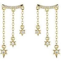 The Love Collection Gold Plated Sterling Silver Triple Star Dropper Earrings Crafted from sterling silver and finished with radiant gold plating, these triple star dropper earrings bring celestial charm to any look. Three dainty stars descend gracefully, creating gentle motion and eye-catching detail. Perfect for special occasions or stylish daytime wear, they offer a blend of whimsy and sophistication, making them a delightful gift or personal jewellery box favourite. Height: 28 MM Width: 11 MM Age Ran...