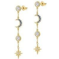 The Love Collection Gold Plated Sterling Silver Celestial Dropper CZ Earrings These celestial dropper earrings combine the warmth of gold plating with the elegance of sterling silver, creating a luxurious yet wearable design. Each piece features sparkling cubic zirconia stones arranged to evoke the night sky. Delicately suspended drops catch the light beautifully, offering subtle movement and shine. Ideal for evening wear or adding a touch of stargazing glamour to everyday outfits. Height: 41 MM Width: ...