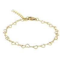 The Love Collection Gold Plated Stainless Steel Linked Heart Bracelet This elegant bracelet features interlinked hearts crafted in durable stainless steel and finished with a warm gold plating. A symbol of connection and love, its versatile design pairs easily with both casual and evening outfits. Lightweight yet sturdy, it offers long-lasting shine and charm. A delightful piece to gift or wear as a daily accessory. Height: 7 IN Age Range: 3+ Fashion Jewellery Type: Bracelets Metal Type: Stainless Steel...