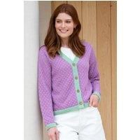 Meet the Shapwick cardigan a cosy, eco-friendly layer youll reach for time and time again. Made from 100% organic cotton, its soft, breathable and knitted in a lovely textured stitch to create something a little bit special. In a head-turning lilac with mint trims and coconut buttons to finish, this is the perfect style to take you through spring and summer. | Kite Women's Shapwick Organic Cotton Knit Cardigan Sweater Lilac in Purple | Size: Large - Manufacturers part number: Kite_5056700593279