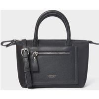 The Linear Mini Tote is a chic and playful addition to your wardrobe. Crafted from durable, heavy weave premium nylon, it can be styled as a crossbody for ease or carried as a top handle tote for a more refined look. A detachable faux leather strap adds to its versatility, while structured lines and polished detailing ensure this small bag makes a big statement. Comes with a dust bag. | OSPREY LONDON Women's The Mini Linear Nylon Tote Bag in Black