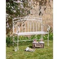 Perfect for relaxing outside in the sunshine this summer, this outdoor bench is part of the Dibor vintage garden furniture collection. Boasting beautiful quality and craftsmanship, the traditional bench is made from lead-free recycled iron with a Gothic-inspired arched metal back and ornate scrolled detail. The standard sized slatted seat will comfortably fit two people when sitting in the garden. In a country cream colour with a rustic finish, the showerproof powder-coated finish is free from toxins an...