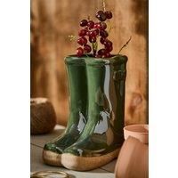 Designed to look just like a pair of wellies, this planter is made from durable stoneware with a high gloss treacle glaze finish in bottle green with relief "buckle" detailing. | Dibor Green Children Wellington Outdoor Boot Ceramic Indoor Outdoor Flower Pot Garden Planter (W) 15cm, (H) 17cm | Size: Small