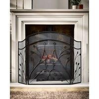 An elegant metal fire guard, decorated with a botanical inspired design of delicate leaves and featuring a matte black finish to make a timeless fireplace accessory. This fire screen is beautifully constructed from sturdy iron in a pleasingly curved shape. Full of character, this traditional fireguard will add a touch of period inspired charm to a coal fire or log burner. With a mesh spark protector frame thats perfect for keeping children and pets away from the hearth and making sure your floor is free...
