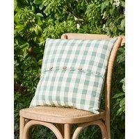 This scatter cushion features a traditional gingham pattern to suit any garden seating area with ease. Complete with wooden button detail for a rustic finishing touch that complements the sage green and white checked print beautifully. A decorative outdoor accessory to introduce some country style and extra comfort to your garden chair or bench, the large cushion is deep filled with soft fibres to help you relax wherever you choose to place it. Our padded cushion has a removable cover thats machine wash...