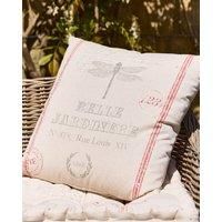 This scatter cushion features a soft sandy beige base colour thats decorated with a vintage dragonfly and red stripe motif to suit any garden seating area with ease. A decorative outdoor accessory to introduce some French country style and extra comfort to your garden chair or bench, the large cushion is deep filled with soft fibres to help you relax wherever you choose to place it. Our padded cushion has a removable cover thats machine washable, so its easy to clean. Made from 100% cotton for an ecofri...