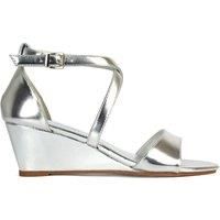 XY London Women's 'Kylie' Strappy Mid Wedge Heel Shoes With Ankle Strap in Metallic Silver | Size: 5