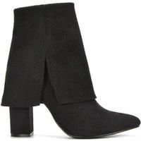 Step out in style with the Ayla Layered Fold Over Pointed Toe Heeled Booties. Featuring a chic zip-up design and a 3.8-inch (9.5 cm) block heel, these elegant boots blend comfort and sophistication for effortless day-to-night wear. | XY London Women's 'Ayla' Fold Over Ankle Boots Layered Point Toe Block Heel Booties in Jet Black | Size: 4 - Manufacturers part number: KPC-8 BLACK FAUX SUEDE 4