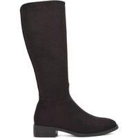 Step into everyday style with these knee-high boots, featuring a comfortable 3.5cm low block heel for all-day wear and pratical zip fastening. The sleek silhouette pairs easily with jeans or dresses, while the stable heel offers comfort and support from morning to night. | XY London Women's 'Lucia' Low Block Heel Knee High Riding Boots in Jet Black | Size: 5