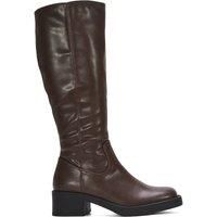 Channel timeless style with these equestrian-inspired biker riding boots. Designed with a 1.8 inch (4.8cm) mid block heel and modern square toe, they deliver comfort, stability and effortless edge for everyday wear. | XY London Women's 'Nyx' Knee High Equestrian Style Biker Riding Boots in Brown | Size: 5 - Manufacturers part number: KG-4 BROWN SYNTHETIC LEATHER 5