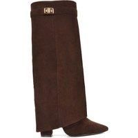 XY London Women's 'Rayna' Block Heel Knee High Foldover Boots With Pointed Toe in Chocolate | Size: 3