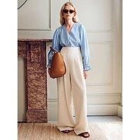 Vivere Nellie High Waist Palazzo Casual Trousers Size & Fit True to size - order your usual size Available in sizes 8 - 16 Details Nellie High Waist Palazzo Casual Trouser by Vivere Cream Palazzo trousers High rise Elasticated back waist Side zip fastening Back welted pocket Material & Care Material Content: Main: 73% Cotton 27% Linen Lining: 100% Viscose Washing Instructions: Machine Washable