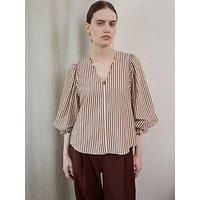 Vivere Remi Stripe Top Size & Fit True to size - order your usual size Regular fit Available in sizes 8 - 18 Details Remi Stripe Top by Vivere Brown/Cream Fine striped design in a lightweight cotton 3/4 length blouson sleeves with frill cuffs V neckline Curved hem Slip-on style Material & Care Material Content: 45% TENCEL 55%POLYAMIDE
