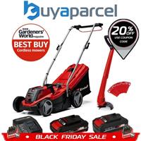 This Einhell cordless garden equipment set consists of the Einhell cordless lawn mower GE-CM 18/33 Li and the Einhell cordless lawn trimmer GC-CT 18/24 Li, lawn areas and edges can be shaped. The lawn mower is recommended for areas up to 200 m2. The mower is driven by the Einhell PurePOWER brushless motor for enhanced power and longer runtimes. Once you register online, the brushless motor has a 10-year warranty. In addition, it has a 5-stage cutting height adjustment and a 30 l grass collection basket....