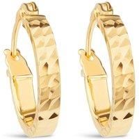 Add a subtle contemporary twist to your style with this pair of diamond cut textured 9ct yellow gold hoops. The textured finish allows the gold to catch the light, in turn catching the eye. Gold hoop earrings are said to be a staple in any jewellery collection, a timeless classic.