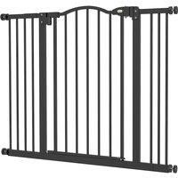 Keep pets away from specific places easily with this safety gate from PawHut. It's made from metal for strength and its width can be adjusted between 74cm and 100cm, meaning it will fit properly in door frames and other passages. Fitted with a middle door to pass when needed, the slide-and-lift handle is easy to use so you can walk through quickly. Two rotating locks on the bottom allow the door to opened both ways, with a double locking mechanism to finish for extra safety.Features:Door automatically ... - Manufacturers part number: D06094V07BK