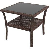 Blending on-trend rattan with a sleek glass top, this Outsunny four-seater garden coffee table is a striking piece for your outdoors. A powder coated steel frame for a strong and supportive core, the outer is wrapped in plastic wicker; offering double the durability and a garden-ready look. The tempered glass tabletop means a safe and solid dining surface which can be easily wiped clean. With a bottom shelf, you can also keep small pieces close altogether.Features:Four-seater size: sit, dine and relax w... - Manufacturers part number: 867164V00BN