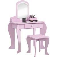 Princesses, your big debut calls! This enchanting girls vanity table set from ZONEKIZ invites little ones into pretend with its cloud-shaped mirror, a table and a stool. Gaze at the shatterproof mirror while storing accessories in the handy drawer. Designed just right for brushing locks and tiaras. Bonus storage means magic stays until tomorrow. Budding beauties will love lounging for hours surrounded by fantasy furnishings! Dare to dream big with this darling set that sparks creativity - Includes a van... - Manufacturers part number: UK316-011V80PK0331