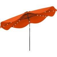 Light up the night with a summertime essential. Not just a parasol umbrella, this is an Outsunny parasol umbrella with lights. All eight ribs are fitted with solar-powered LEDs: they charge in the sunlight to power up when dark - extend your outdoor leisure time easily. The canopy can be tilted to a maximum 45 angle either way which blocks light in different directions. Use the crank handle to open and close the canopy easily. Use a base to stand upright and steady day and night.Features:Parasol base mi... - Manufacturers part number: 84D328V00OG