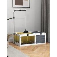 Experience pure bliss for your tortoise with our PawHut tortoise table! Effortlessly maintain cleanliness with the double pull-out tray and convenient openable lids, simplifying pet care. Create a cosy and warm living space with an adjustable lamp holder for a great climate. Watch your tortoise thrive in the spacious living room and run area, encouraging endless exploration and play. Give your shelled friend a delightful home they'll adore! Features: Two-room design: Built-in hide box and basking area with metal grating. This outdoor tortoise house follows reptile animals' nature of life by providing sufficient sunlight and a comfortable resting place. It is the preferred housing when keeping tortoises Customized comfort: The adjustable lamp holder allows you to easily add a heating lamp, providing optimal temperature for your tortoise's well-being Convenient cleaning and interaction: The double pull-out trays and openable lids make cleaning effortless. Open the lids, this tortois...