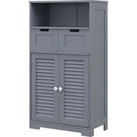 This kleankin small bathroom cabinet gives you that extra storage you need, wherever you need. Combines an open shelf, drawers and bottom cupboard - plenty of space. It's made from MDF: sturdy and suitable for everyday use. Comes with anti-tipping straps to attach safely to a wall.Features:Open shelf, two pull-out drawers and a double-door cupboardShelf inside cupboard is adjustable to three different levelsLouvred doors allow air insideSturdy MDF structure, with a lightly-protective paint coatingAnti-... - Manufacturers part number: 834666V80GY