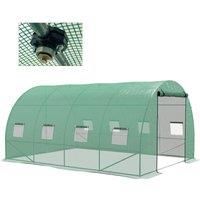 Transform your garden into a haven for growth, thanks to this Outsunny walk-in polytunnel greenhouse. The integrated spray system is easy: simply connect your hose - keeps plants hydrated and happy. The galvanised steel frame and reinforced support bars ensure a strong standing structure, all protected with a plastic cover. Integrated sprinkler system: Garden polytunnel has a built-in water pipe. Keeps plants stay hydrated and helps them grow. 140gsm plastic cover: Reinforcement grid through the middle to prevent tearing. Walk-in greenhouse protects your plants for longer. Wide door and mesh windows: Easy to enter and leave this polytunnel greenhouse. Mesh windows brings in fresh air when needed. Galvanised steel structure: A strong structure with diagonal bracing rods, greenhouse stands steady upright. Dimensions: 198H x 399L x 298Wcm. Door: 167H x 160Wcm. Water pipe: F20cm. Suitable hose: Inner: F13mm, F19mm. Assembly required - two people recommended. - Manufacturers part number: UK845-949V01GN0331