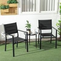 The powder coated aluminium frames of these Outsunny chairs mean a strong, supportive structure. High backs and arms for support. Aluminium frames mean a strong supportive core. Stack on each other when not being used to save space. Comes in a set of two.