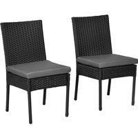 A must for your garden: these Outsunny chairs. Powder coated metal frames for a strong core, wrapped in rattan for style. High backs for support. Complete with a cushion for comfort.Features:Two dining chairs to sit with companyComfortable padded cushion, with removable and washable coverPowder coated metal frame for a strong coreDurable and stylish plastic wicker outerFoot pads protect floorMaximum load 120kg, assembly required - Manufacturers part number: 861090V70BK