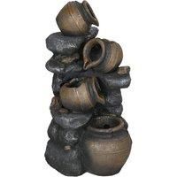 Enhance your garden with this 4-tier garden water fountain, a great choice for decoration. Its realistic look is well-suited for rustic or Zen gardens. The included pump guarantees an independent water circulation, maintaining a constant flow of gurgling water. Additionally, the waterfall fountain features LED lights at 3 levels, illuminating the trickling water and creating a captivating atmosphere. Add natural beauty to your space by using the cascading broken jars and natural stacked stones.Features:... - Manufacturers part number: 844815V00MX