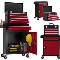 Two-in-one storage with this HOMCOM tool chest on wheels. The two-part design comes with the upper carry chest and lower cupboard. Inner EVA mats protect tools and help prevent scratches on the tool storage cabinet itself. Made powder-coated steel, this is a tough piece made to work with you. Complete with wheels and a lockable bottom door.Highlights:. Multi-Storage Design: Tool cabinet comes with five slide-out drawers, top storage area, bottom cupboard and a side rack. Ball bearing runners on drawers for smooth opening and closing.. Removable Top Chest: Take off from the large tool chest and use separately - carry around easily. Upper tool chest can be stored inside the cupboard to save space when needed.. Powder Coated Steel: Made from the job - this tool chest on wheels is strong and tough.. Four Wheels: Tool storage cabinets can be moved around easily. Two brakes so it stands in place steady.. Lockable Bottom Cupboard: Tool cabinet on wheels keeps securely closed. Two keys include... - Manufacturers part number: UKB20-105V00MX0331