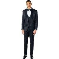 Introducing the Louis Damask Print 3-Piece Tuxedo Suit, perfect grooms wanting style sophistication. This suit features a floral-patterned jacket waistcoat, paired classic solid trousers. The wide sateen shawl lapels enhance its elegance, making it ideal weddings -tie events. Crafted from a premium blend of rayon terylene, this tuxedo suit is designed to impress. | XPOSED Men's Louis - 3 Piece Wedding Suit Damask Jacquard Print in Black | Size: 40R