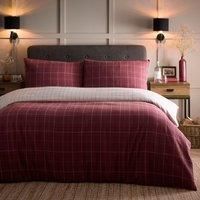 Dreams & Drapes Lodge Wynn Brushed Cotton Duvet Cover Set, 100% Cotton, Single 140x200cm, Burgundy, Checkered Pattern, Reversible