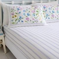 - Experience refined comfort with the Sweet Pea Floral fitted sheet in 100% cotton. A delicate lavender leaf stripe on pristine white offers subtle texture and timeless grace. Perfectly paired with our vibrant floral bedding, it creates a coordinated, heirloom-quality look that transforms any bedroom into a serene sanctuary.