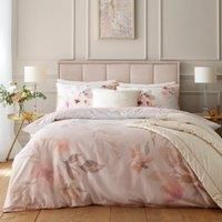 - The Mia Floral Bloom bedding set combines artistry and comfort with 200 thread count 100% cotton sateen for a silky-smooth feel. Featuring soft watercolour blooms in blush, peach, and gold with refined flat piped edging, it reverses to a classic pin stripe for versatile style-luxury and timeless charm in one.