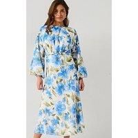 Six Stories Floral Balloon Sleeve Maxi Dress Size & Fit True to size - order your usual size Regular fit Midi length Available in sizes 8 - 18 Details Floral Balloon Sleeve Maxi Dress by Six Stories Blue Long balloon sleeves Slim buckle belt Boat neckline Back zip fastening Floral print