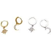Lovii Women's Moon & Star Stainless Steel Hoop Earrings - Gold & Silver | Size: 12mm
