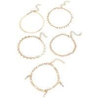 Add a touch of elegance and shine to your summer look with this 5-piece gold anklet set. Each anklet features a unique design, including heart, disc, and chain patterns perfect for layering or wearing individually. Whether for the beach, parties, or daily wear, these anklets elevate your style effortlessly. Stylish Variety: Five different chain styles allow you to mix and match for any outfit or mood. Layered Look: Wear multiple anklets together for a trendy boho-chic vibe. Gift-Ready: Beautiful and ver...