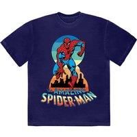 Official licensed Marvel Comics Unisex T-Shirt featuring the 'Spider-Man Keyhole' design motif. High quality T-Shirt available in a navy blue colourway. High quality soft-style cotton unisex t-shirt featuring front printing. Comes in a wide range of sizes from Small through XX-Large, subject to availability. | Marvel Unisex Spider Man Keyhole Stance T-Shirt in Navy | Size: XL - Manufacturers part number: Marvel_5056737253894