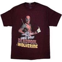 Official licensed Marvel Comics Unisex T-Shirt featuring the 'Deadpool & Wolverine Change Universe' design motif. High quality T-Shirt available in a maroon red colourway. High quality soft-style cotton unisex t-shirt featuring front printing. Comes in a wide range of sizes from Small through XX-Large, subject to availability. | Marvel Deadpool And Wolverine Change The Universe T-Shirt in Red | Size: X-Large