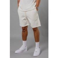 These embossed shorts are an everyday staple. Feature elasticated waistband with drawcord, two side pockets, two mock pockets, and Blank Essentials branding on the leg. Made from cotton blend fabric to ensure comfort and quality. Pair with a matching 'Etched' embossed t-shirt to complete the look. | Blank Essentials Men's Cotton Blend 'Etched' Embossed Shorts in White | Size: Medium