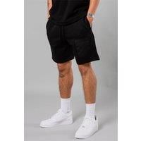 These shorts are an everyday staple. Features an elasticated waistband with drawcord, a thigh pocket, and Blank Essentials branding on the back. Made from cotton blend fabric to ensure comfort and quality. Pair with a matching 'Japanese' t-shirt to complete the look. | Blank Essentials Men's Cotton Blend Shorts with Pocket in Black | Size: Small