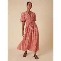 Nobodys Child Scottie Gingham Midi Dress Size & Fit True to size - order your usual size Regular fit Midi length Available in sizes 6 - 16 Details Scottie Gingham Midi Dress by Nobodys Child Red Short puffed sleeves V neck Adjustable tie waist fastening Gingham print Textured fabric Material & Care Material Content: 100% Cotton - Manufacturers part number: WFUWG