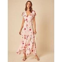 Nobodys Child Loubella Floral Midi Dress Size & Fit True to size - order your usual size Regular fit Midi length Available in sizes 6 - 16 Model's height is 5'10"" - she wears a UK size 8. Dress length 128cm Details Loubella Floral Midi Dress by Nobodys Child Pink Floral print V-neck Flutter sleeves Empire waistline Tie back detail Concealed zip fastening Designed to be semi-fitted Length is 128cm