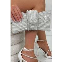 Make an entrance with the Lemonade Sparkly Pearl Bow Clutch Bag a dazzling piece crafted to elevate every elegant affair. Featuring radiant silver and pearl-tone beading across a striking bow-shaped design, this clutch is your ultimate statement piece for glamorous evenings. Wear it with your favourite party dress or elevate your bridal look with a touch of sparkle. | Love Lemonade Women's Sparkly Pearl Bow Clutch Bag in Silver - Manufacturers part number: Love Lemonade_5056746985410