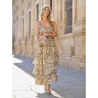Elevate your style with this Finding Friday Metallic Printed Ruffle Strappy Shoulder Maxi Dress. This sleek maxi dress features a metallic print and delicate ruffle details, perfect for a chic, effortless look. Adjustable strappy shoulders add a modern touch to its flattering silhouette. Model is 5ft 8 and wears size S. - Manufacturers part number: Finding Friday_5056747412977