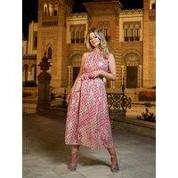 Elevate your style with this Finding Friday Metallic printed high neck tie waist maxi dress. This metallic printed midi dress features a high neck and tie waist for a flattering, adjustable fit. Its sleek design brings a modern touch to any occasion. Model is 5ft 8 and wears size S. - Manufacturers part number: Finding Friday_5056747413035
